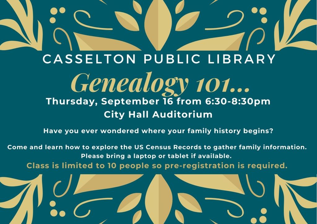 Your family history search begins here… Class is limited to 10 people so preregistration is required at: https://www.signupgenius.com/go/10C0A49ADAC2BABFE3-genealogy