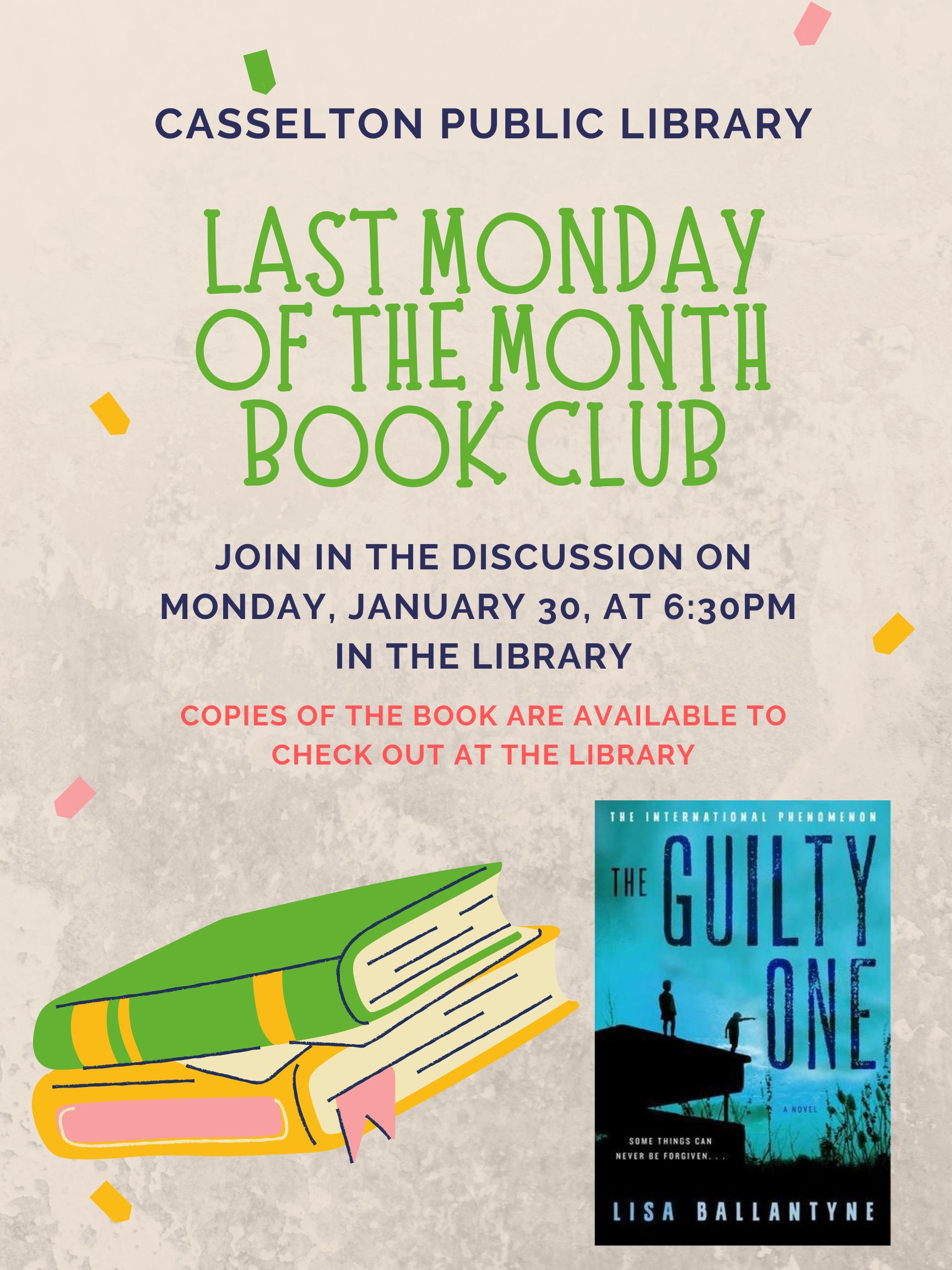 AdultsLast Monday of the Month Book Club January 9, 2023 cassndlibrary Share: Click to email a link to a friend (Opens in new window) Email TweetLike Loading... Related Published by cassndlibrary View all posts by cassndlibrary
