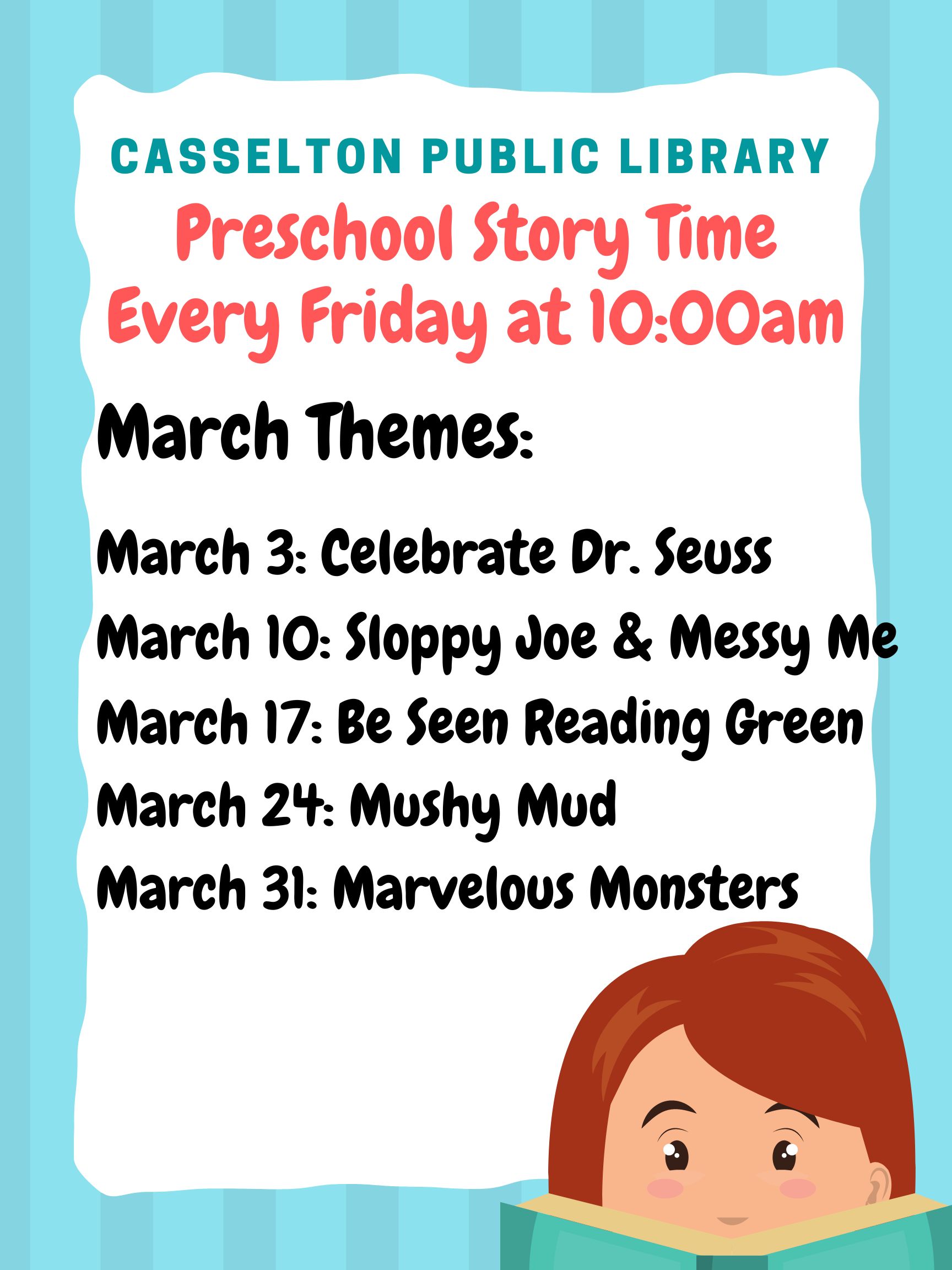 FamilyPreschool Storytime March 7, 2023 cassndlibrary Share: Click to email a link to a friend (Opens in new window) Email TweetLike Loading... Related Published by cassndlibrary View all posts by cassndlibrary