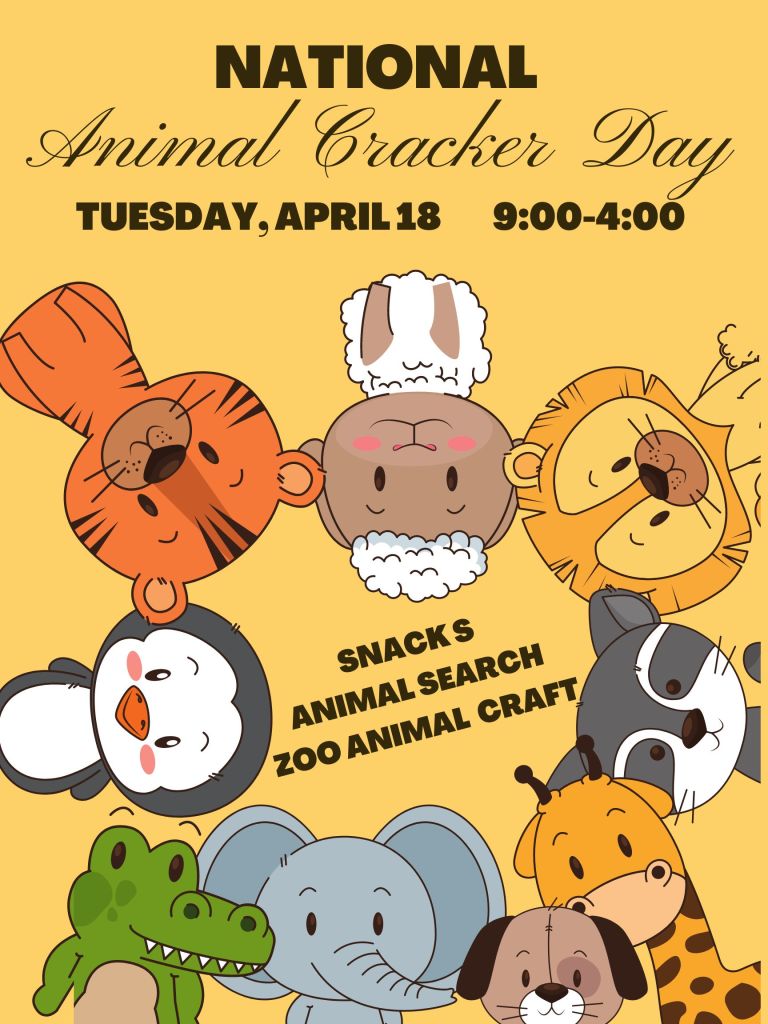 FamilyAnimal Cracker Day March 31, 2023 cassndlibrary Share: Click to email a link to a friend (Opens in new window) Email TweetLike Loading... Related Published by cassndlibrary View all posts by cassndlibrary