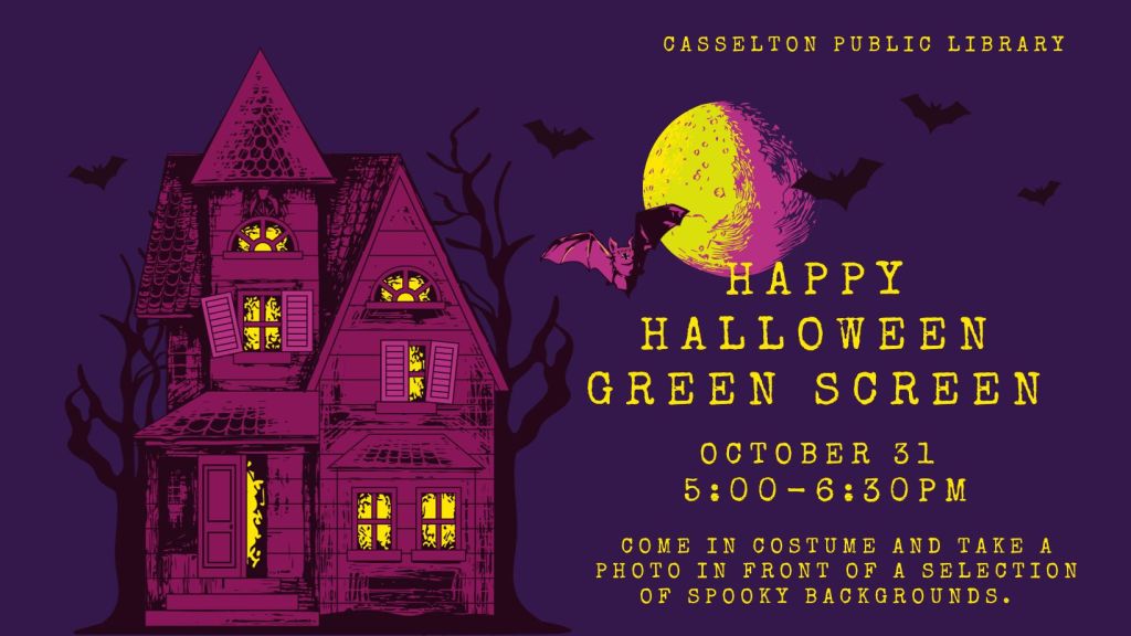 FamilyHalloween Green Screen October 2, 2023 cassndlibrary Swing by the library on Halloween night to get your costume captured and have a photo to digitally share with everyone. Share: Click to email a link to a friend (Opens in new window) Email TweetLike Loading... Related Published by cassndlibrary View all posts by cassndlibrary