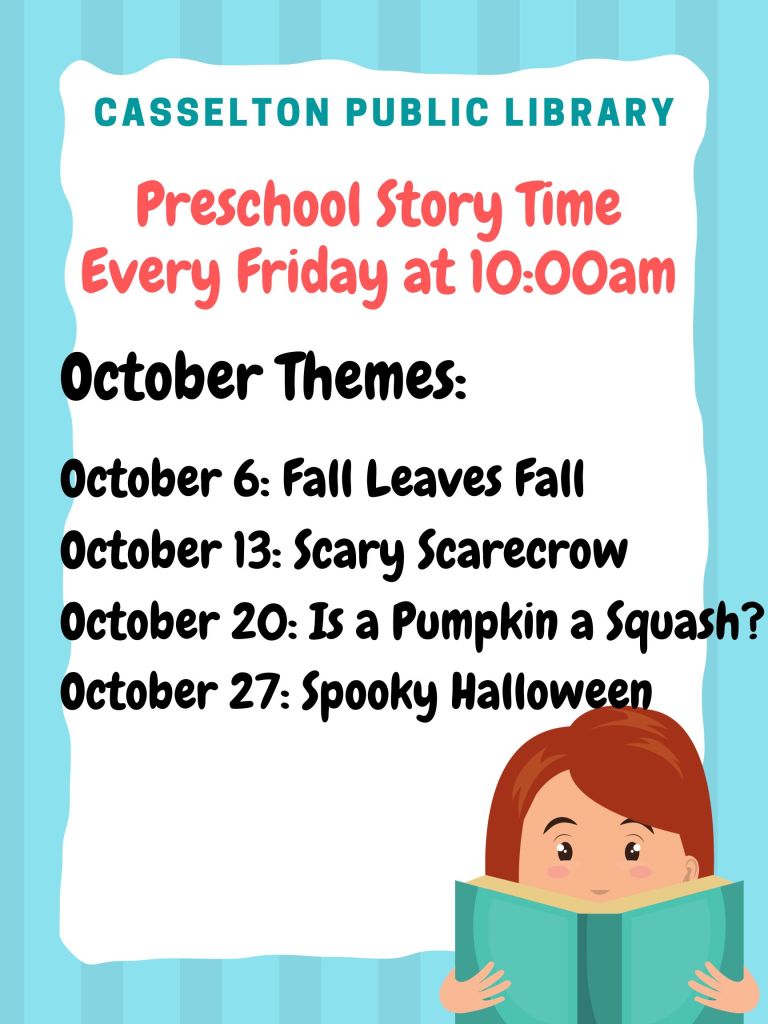 FamilyPreschool Storytime October 2, 2023October 2, 2023 cassndlibrary Join the Friday fun as we gather to read 5-6 books and do a project/craft/activity relating to the daily theme. Share: Click to email a link to a friend (Opens in new window) Email TweetLike Loading... Related Published by cassndlibrary View all posts by cassndlibrary