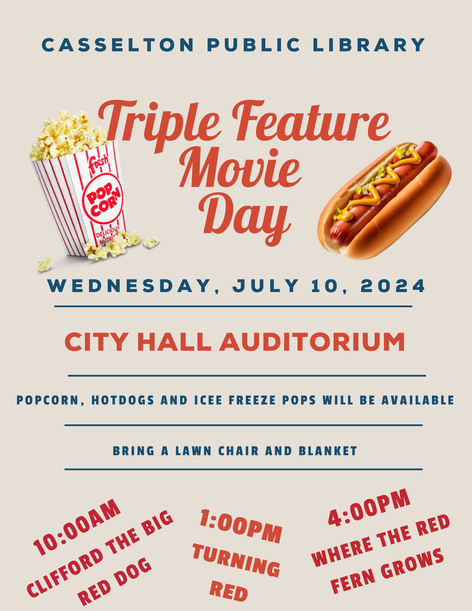 Adults, FamilyTriple Feature Movie Day July 1, 2024 cassndlibrary Share: Click to email a link to a friend (Opens in new window) Email TweetLike Loading... Related Published by cassndlibrary View all posts by cassndlibrary