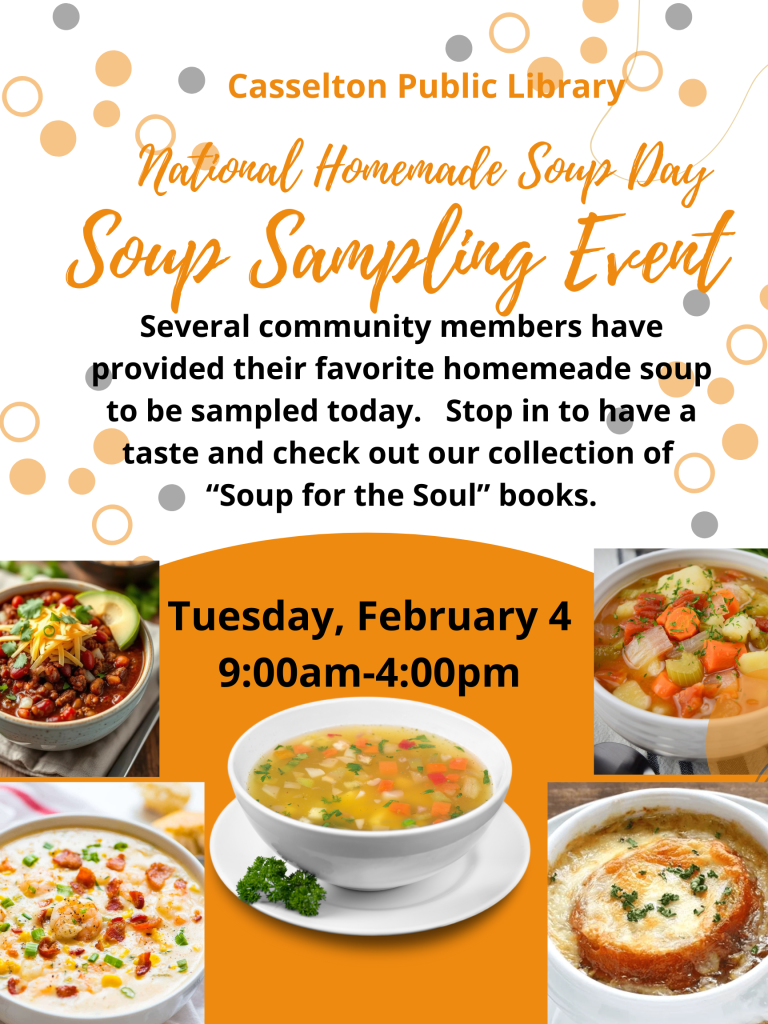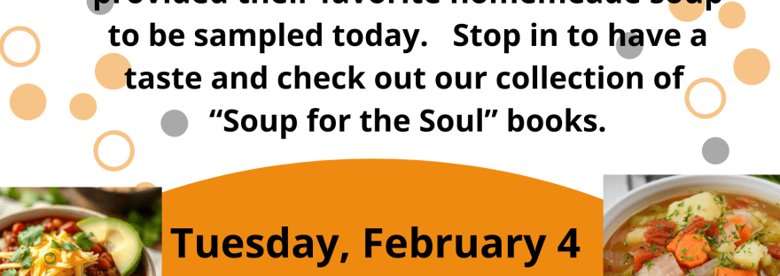 FamilySoup Sampling Event January 27, 2025January 27, 2025 cassndlibrary Share: Click to email a link to a friend (Opens in new window) Email TweetLike Loading... Related Published by cassndlibrary View all posts by cassndlibrary