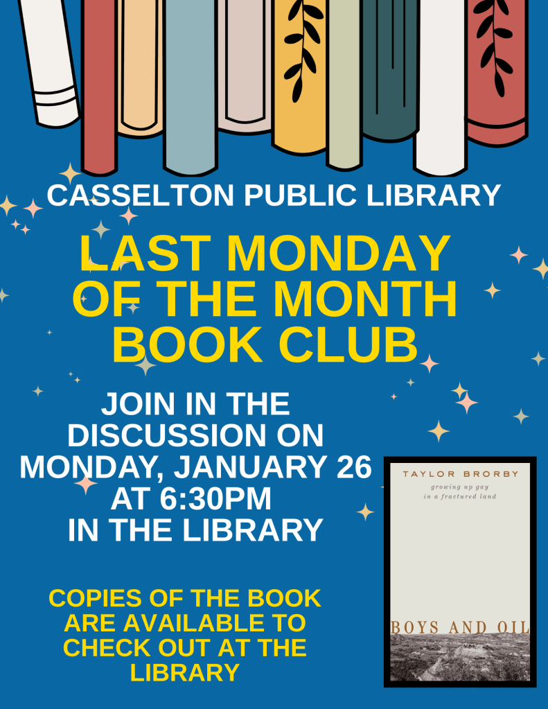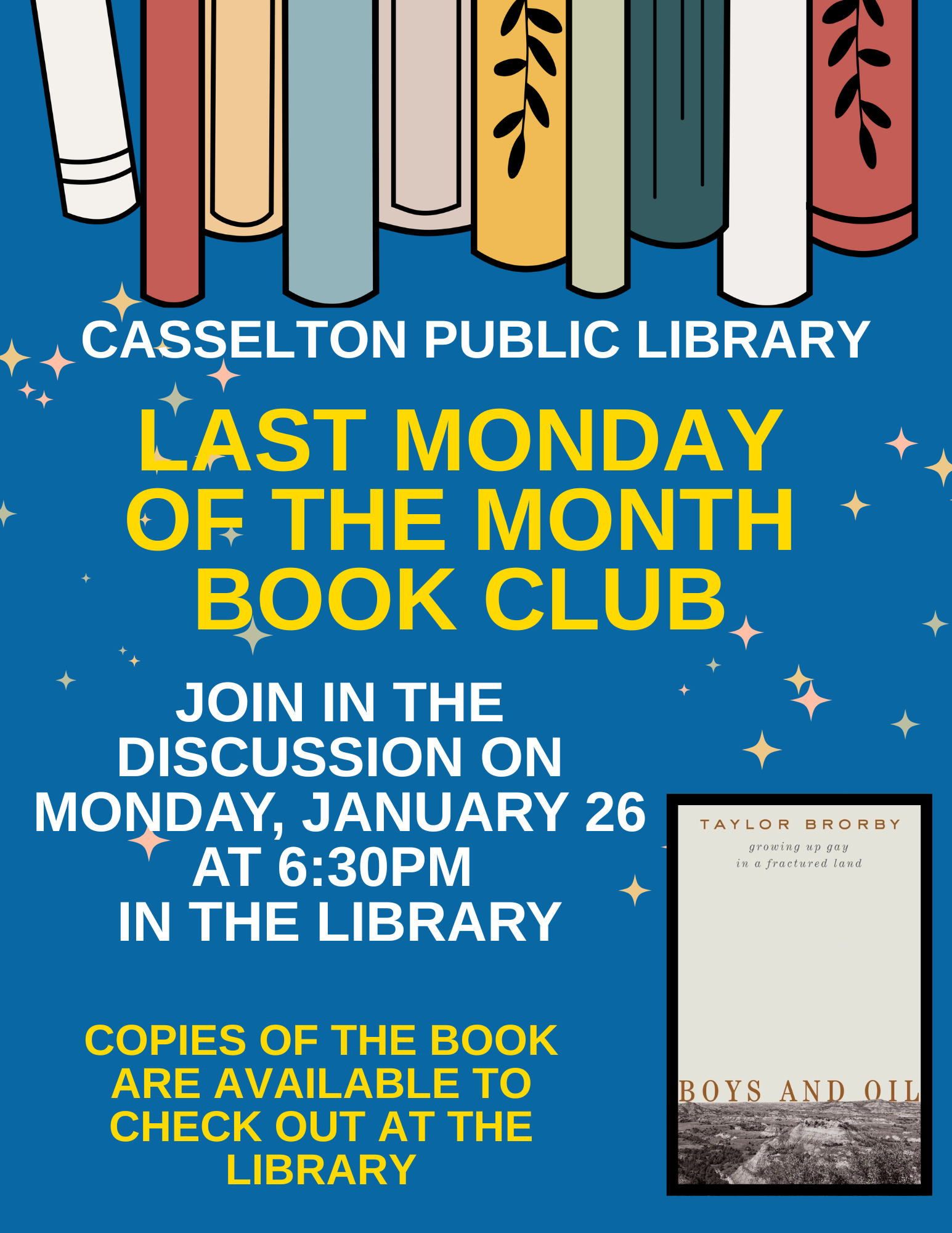 Adults, UncategorizedLast Monday of the Month Book Club December 30, 2025 cassndlibrary Share: Click to email a link to a friend (Opens in new window) Email TweetLike Loading... Related Published by cassndlibrary View all posts by cassndlibrary