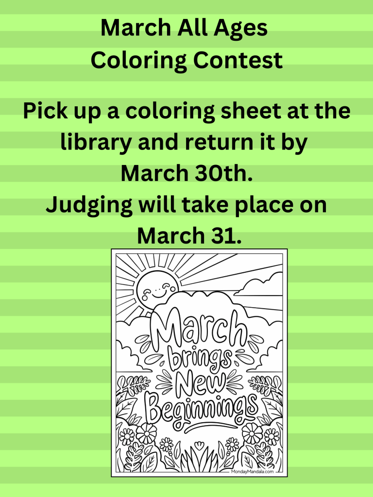 FamilyColoring Contest February 26, 2026 cassndlibrary Share: Email a link to a friend (Opens in new window) Email TweetLike Loading... Related Published by cassndlibrary View all posts by cassndlibrary