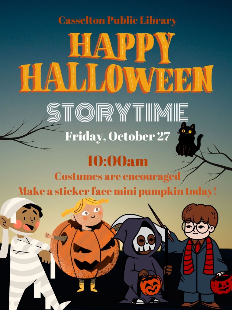 FamilyHalloween Storytime October 2, 2023 cassndlibrary Bring the Ghosts, Goblins, Witches, and Warlocks to the library to listen to a few “Not-So-Scary” stories to get everyone in the Halloween Spirit.